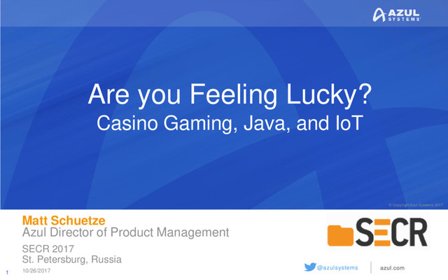 Java is a great system for making casino games. Interfacing them with physical hardware takes PC games you write yourself a lot closer to their Vegas or Macau counterparts. This talk explores cryptographically strong random number generators. It also shows using elements of IoT to provide physical hardware to implement random chance, shows a few cool sources of entropy, and outlines the direct coupling with Java’s security providers. Still think this is just a game? Casinos grossed $317 billion USD in 2015 alone. Gaming is big money, too.