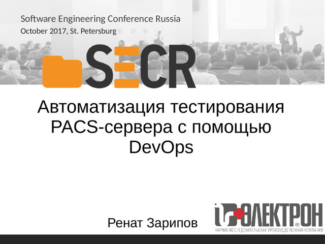 Автоматизация тестирования PACS-сервера с помощью DevOps, Ренат Зарипов, НИПК Электрон, CEE-SECR 2017