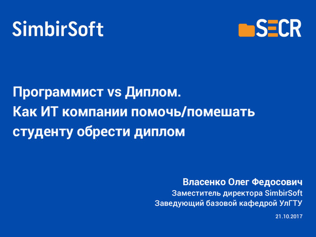 Для компании, взявшей к себе на работу студента, его учеба – это существенная головная боль (полноценно в проекте не задействуешь, во времена сессии – где-то пропадает и т.д.). Для вуза, работающий студент – отрезанный ломоть (мало того, что полноценно не учится, но к преподаванию особо не привлечь, нагрузку прочую не повесить и многое другое). Какие есть варианты баланса интересов ИТ компаний, вузов и студентов? Об этом будет в моём докладе.