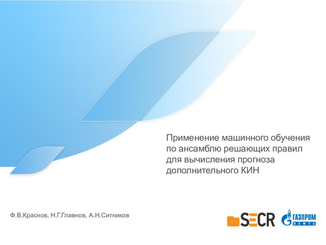 Поиск оптимального совместного использования методов моделирования физических процессов и моделирования на основе машинного обучения является одним из приоритетных направлений исследований для ПАО ГазпромНефть. Рассмотрение частной задачи по моделированию дополнительной нефтеотдачи (КИН) привело авторов к тому, что кроме традиционных вычислительных экспериментов на регулярной решётке более продуктивными могут стать вычисления с помощью алгоритмов машинного обучения. Авторы рассмотрели подход к построению прокси-моделей на основе Random Forest Regressor.