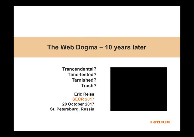Web Dogma, Eric Reiss, FatDUX, CEE-SECR 2017