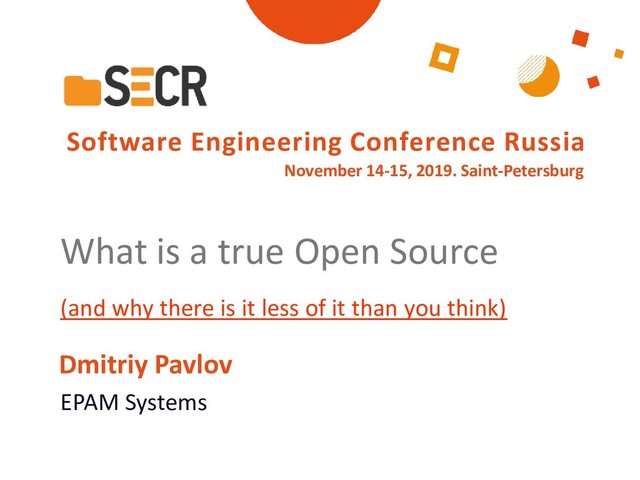 В своем докладе рассмотрю признаки здорового open source проекта: сообщество, управление и бренд. Разберем, какие проекты соответствуют определению open-source, а какие на самом деле лишь source-available решения.