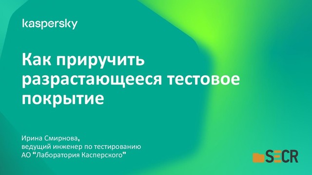 Я представляю свой 7-летний опыт организации тестирования на постоянно увеличивающемся тестовом покрытии без увеличения человеко-ресурсов. На текущий момент мое тестовое покрытие включает в себя около 9000 тестовых машин, 600 уникальных версий продуктов, 200 тестируемых типов обновлений для продуктов, скачиваемых 25-ю миллионами пользователей ежедневно. Имеющиеся у меня наработки будут полезны тест-инженерам, разрабатывающим и поддерживающим тесты на большом количестве различных комбинаций операционных систем и продуктов.