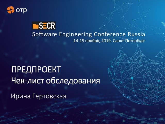 Как быстро оценить потребность в разработке или доработке системы по минимальным требованиям заказчика? Как в условиях цейтнота не упустить важного, обеспечить выполнение цели, возможно, не вполне понимаемой заказчиком? Как не пропустить то, о чем заказчик не упоминает (может быть, не увидел), но без чего проект не взлетит? Расскажу об этом на основе практического опыта, с подкреплением Сводом знаний по бизнес-анализу (BABOK 3.0). Покажу подход к оптимальному пути при обследовании и чек-лист обследования. Доклад предназначен для project-менеджеров, но будет интересен и аналитикам, участвующим в разработке программного обеспечения и менеджеру продаж, для оценки стоимости проекта.
