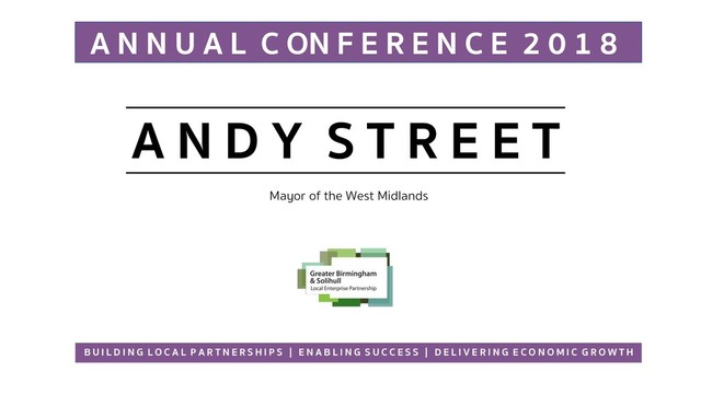Mayor of the West Midlands A N N U A L C ON F E R E N C E 2 0 1 8 B U I L D I N G L O C A L P A R T N E R S H I P S | E N A B L I N G S U C C E S S | D E L I V E R I N G E C O N O M I C G R O W T H