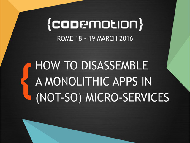 In this presentation I share some of the experiences made during the dismantling a monolithic application into microservices.