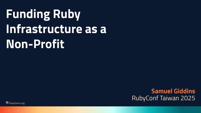 others donate services → Grants (60% of budget): Alpha-Omega, Sovereign Tech Agency, AWS → The Alpha-Omega grant covers my residency → Corporate Sponsorship: $10K+ annually for overall support of the organization → Shopify's Ruby Shield program is $1MM over four years → Open Source Supporter Program: $2,500-$5,000 annually specifically for open source → Individual Membership: Low-dollar community support (launching soon) → One-Time Donations: Flexible, no-strings-attached support RubyGems.org