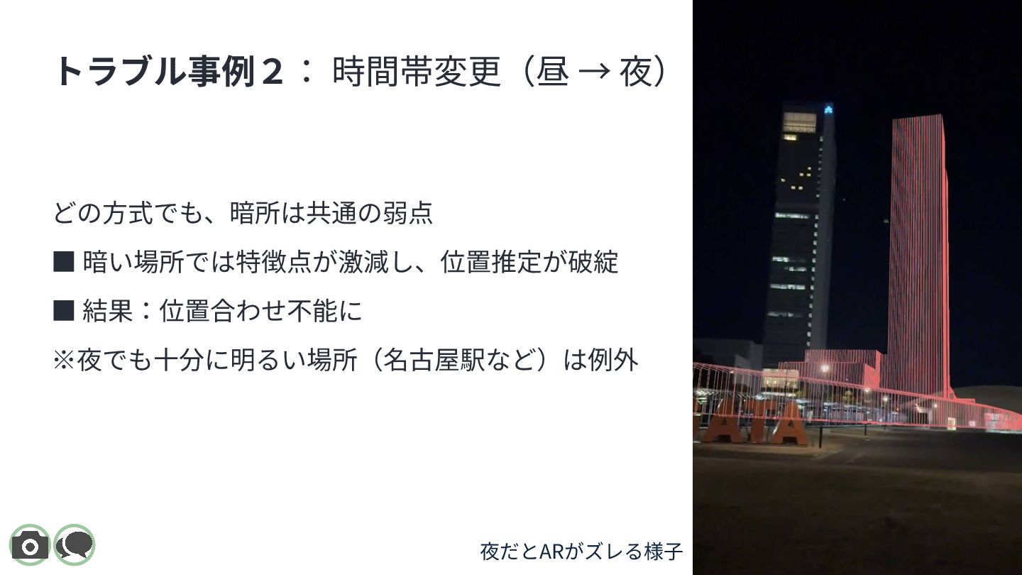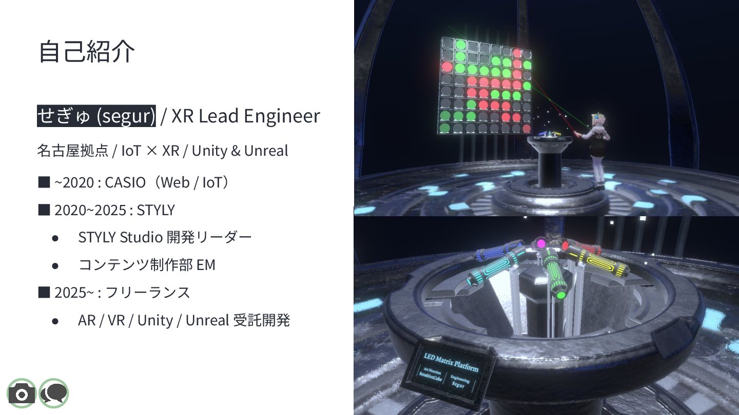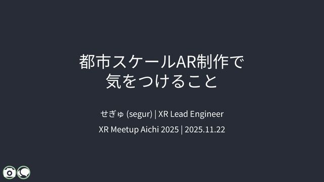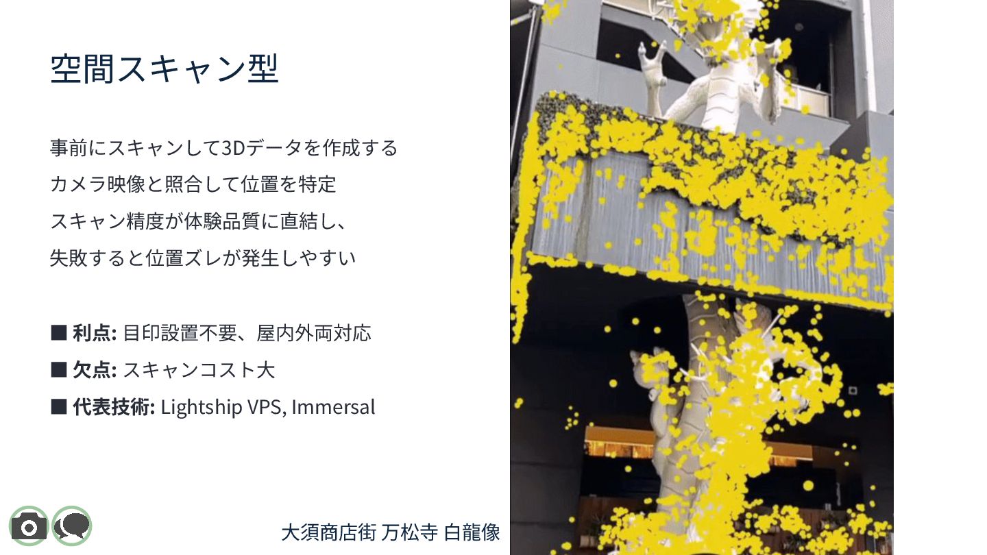 XR Meetup Aichi 2025(名古屋 / 2025.11.22)で登壇した際のスライドです。 都市スケールARにおける位置合わせ技術を、 「マーカー型 / 空間スキャン型 / 地理空間型」の3分類で整理しています。