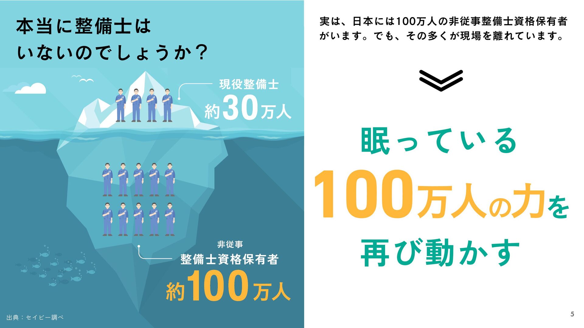 万人 眠っている 再び動かす を 100万人 力 の 本当に整備士は いないのでしょうか? 出典:セイビー調べ 5