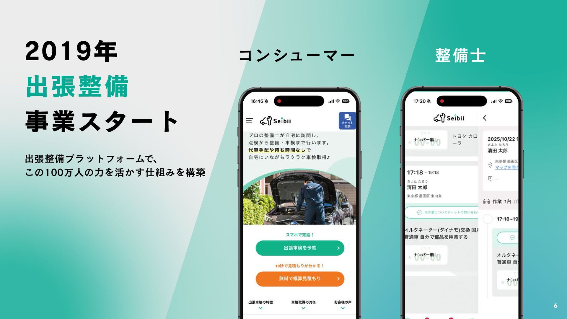 2019年 出張整備 事業スタート 6 出張整備プラットフォームで、 この100万人の力を活かす仕組みを構築 コンシューマー 整備士