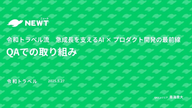 QAでの取り組み 令和トラベル流 急成⻑を⽀えるAI × プロダクト開発の最前線 2025.5.27 QAエンジニア ⻘海貴⼤
