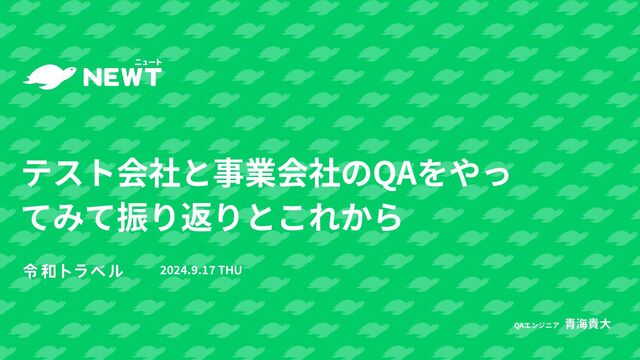 テスト会社と事業会社のQAをやっ てみて振り返りとこれから 2024.9.17 THU QAエンジニア ⻘海貴⼤
