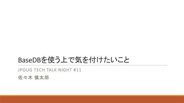BaseDBを使う上で気を付けたいこと JPOUG TECH TALK NIGHT #11 佐々木 慎太郎