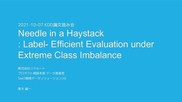 Class Imbalance 2021-10-07 KDD論文読み会 株式会社リクルート プロダクト統括本部 データ推進室 SaaS領域データソリューション2G 黒木 誠一