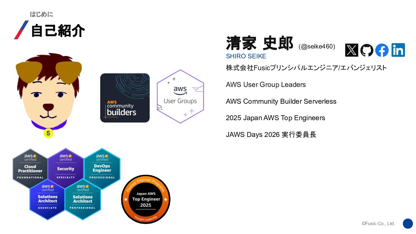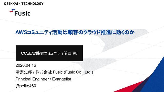 2026.04.16 清家史郎 / 株式会社 Fusic (Fusic Co., Ltd.) Principal Engineer / Evangelist @seike460