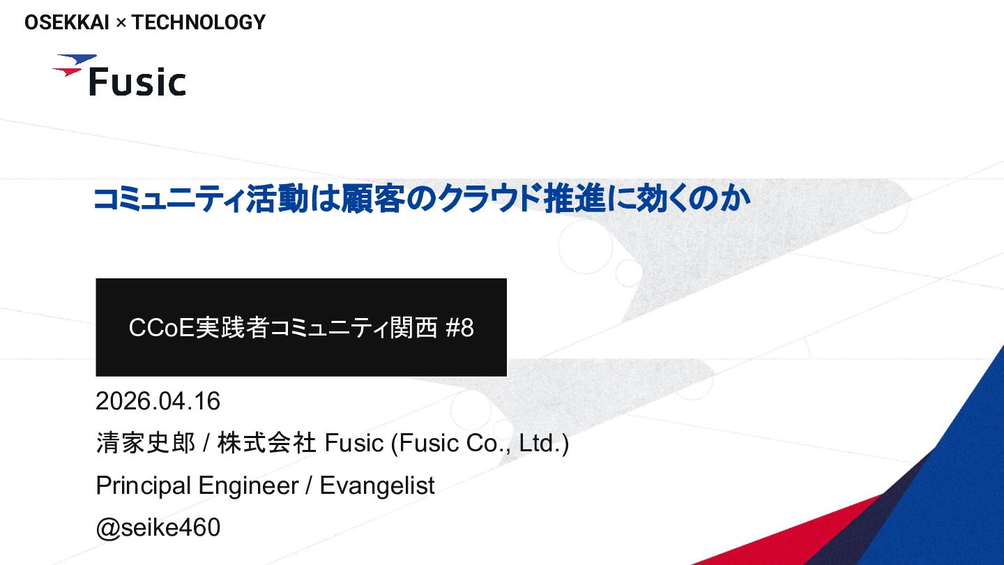 ©Fusic Co., Ltd. CONFIDENTIAL OSEKKAI × TECHNOLOGY AWSコミュニティ活動は顧客のクラウド推進に効くのか CCoE実践者コミュニティ関西 #8