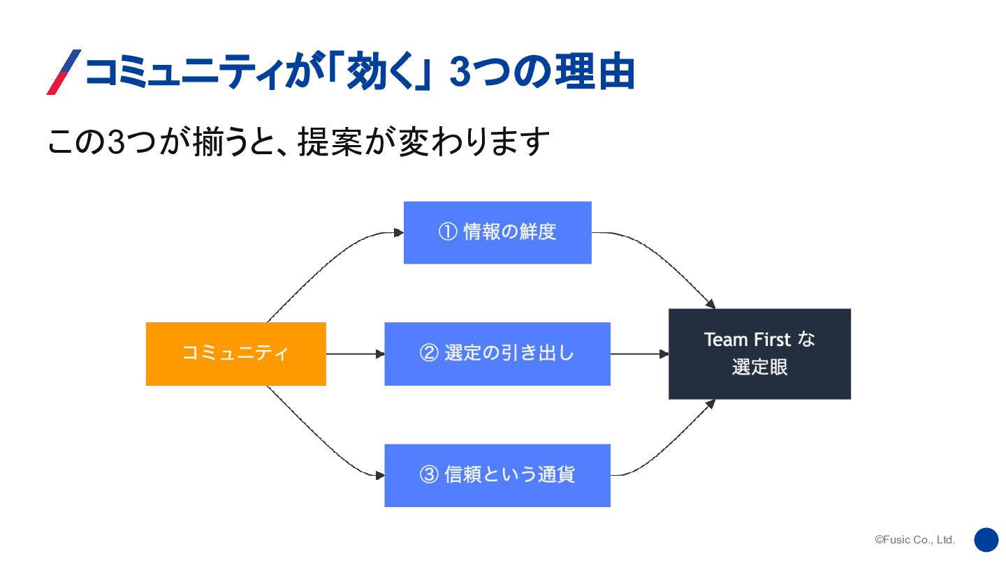 ©Fusic Co., Ltd. この3つが揃うと、提案が変わります コミュニティが「効く」 3つの理由
