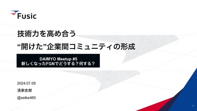 ©Fusic Co., Ltd. 1 ٕज़ྗΛߴΊ߹͏ “։͚ͨ”اۀؒίϛϡχςΟͷܗ 2024.07.09 @seike460 DAIMYO Meetup