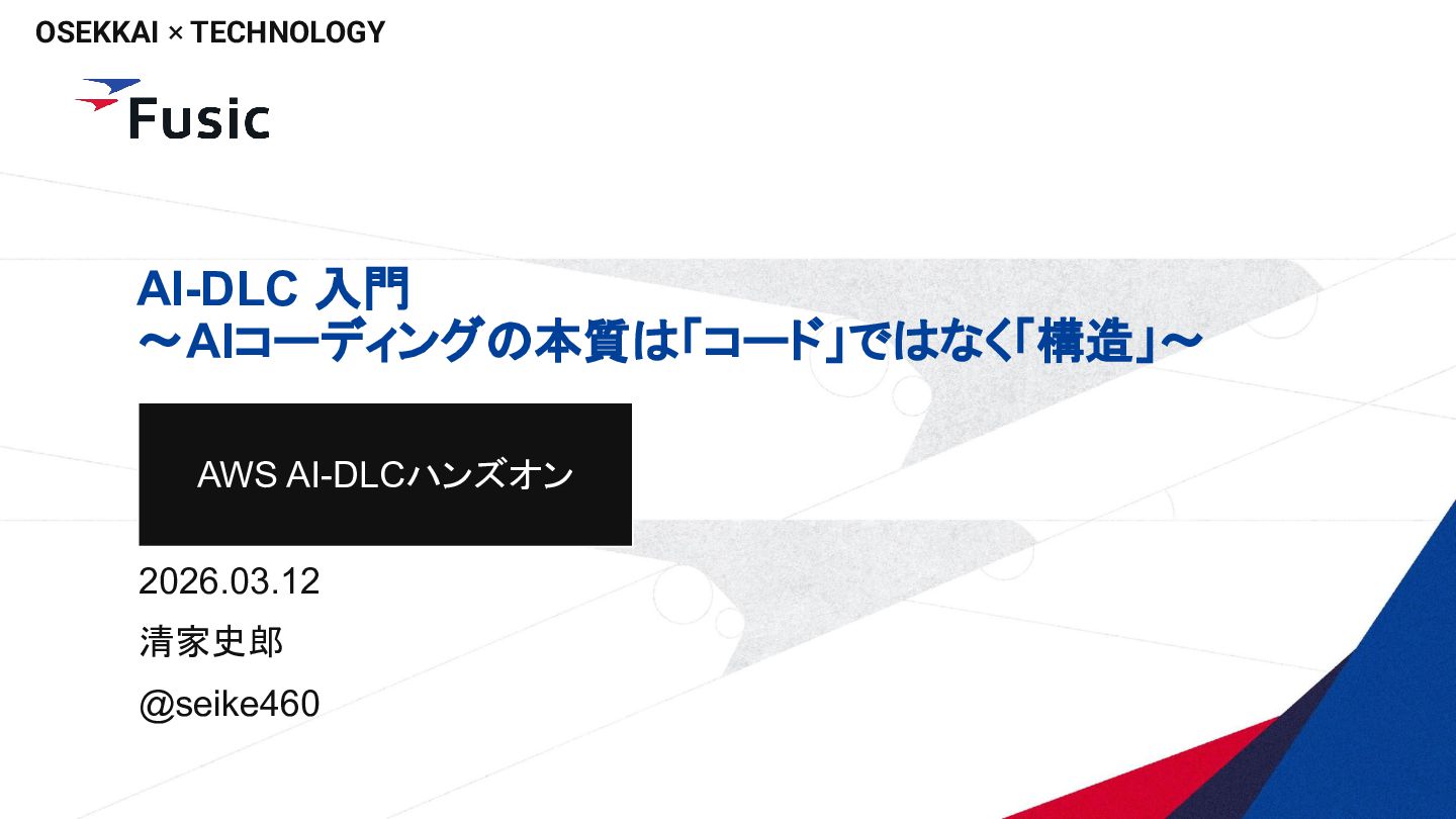 ©Fusic Co., Ltd. CONFIDENTIAL OSEKKAI × TECHNOLOGY AI-DLC 入門 〜AIコーディングの本質は「コード」ではなく「構造」〜