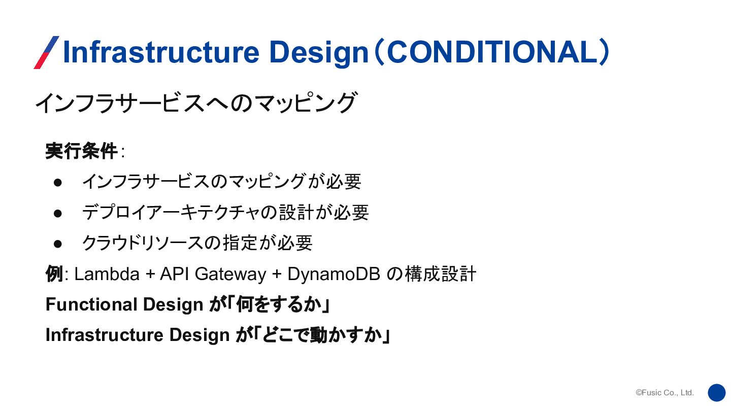 ©Fusic Co., Ltd. インフラサービスへのマッピング Infrastructure Design(CONDITIONAL) 実行条件: • インフラサービスのマッピングが必要 •
