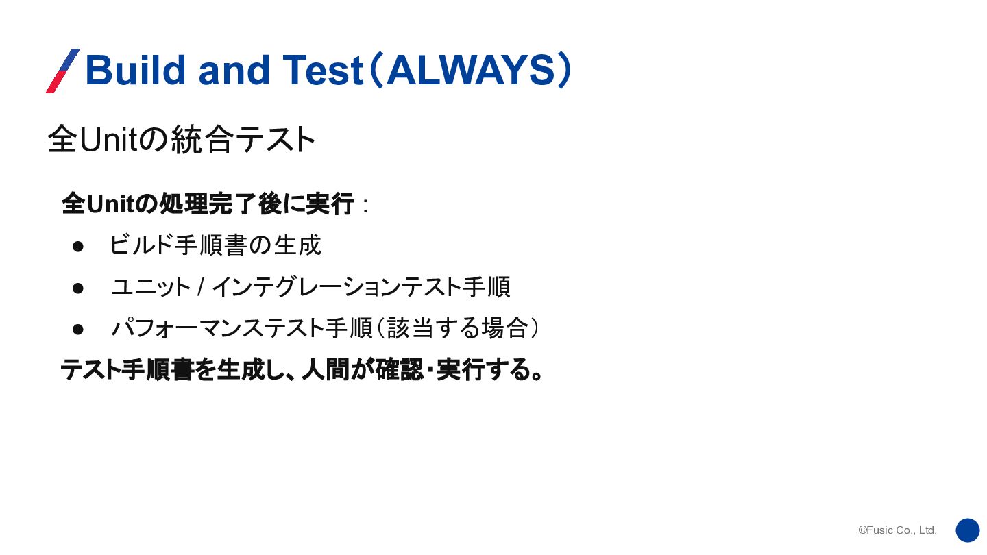 ©Fusic Co., Ltd. 全Unitの統合テスト Build and Test(ALWAYS) 全Unitの処理完了後に実行 : •