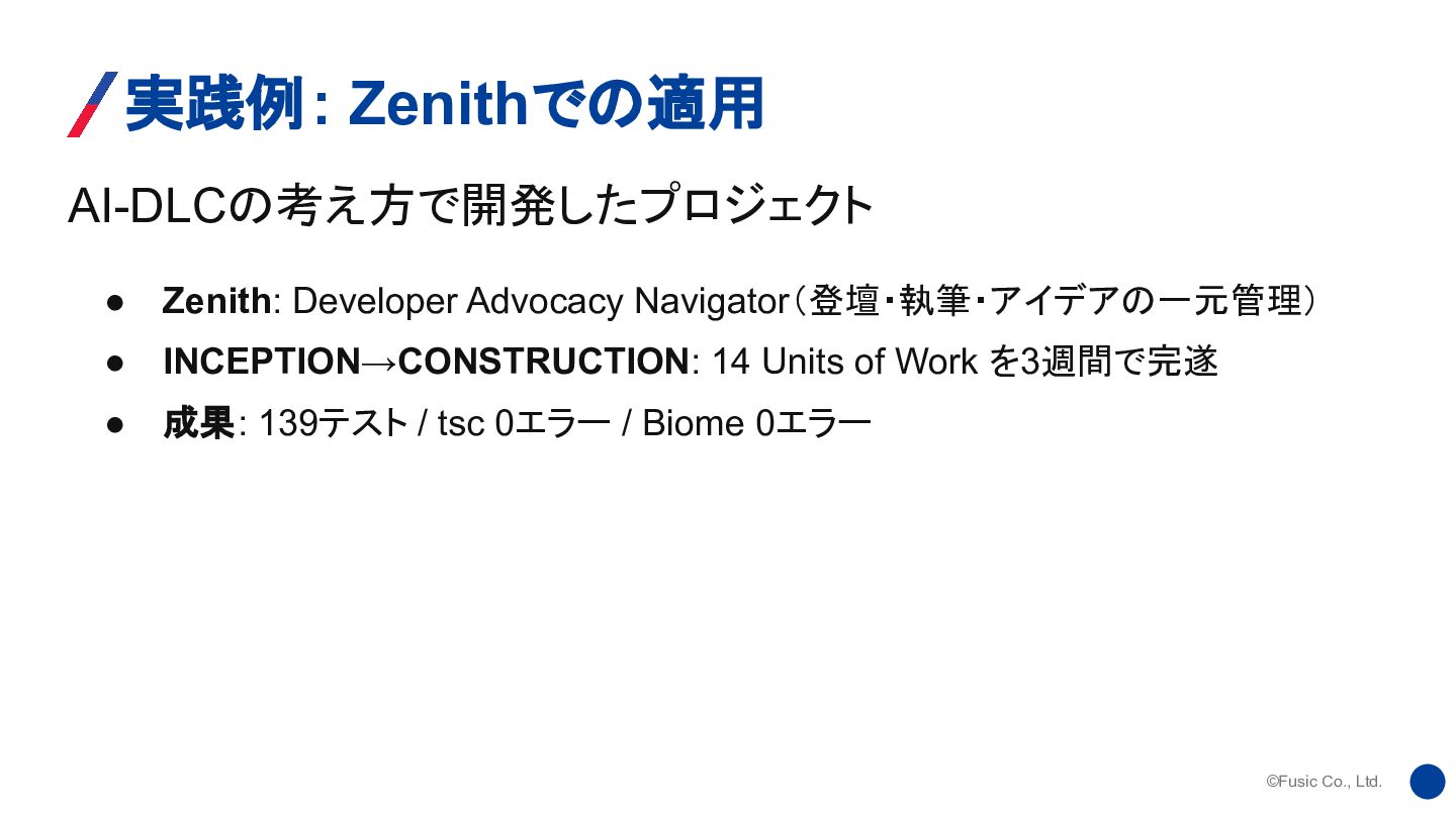 ©Fusic Co., Ltd. AI-DLCの考え方で開発したプロジェクト 実践例: Zenithでの適用 • Zenith: Developer Advocacy