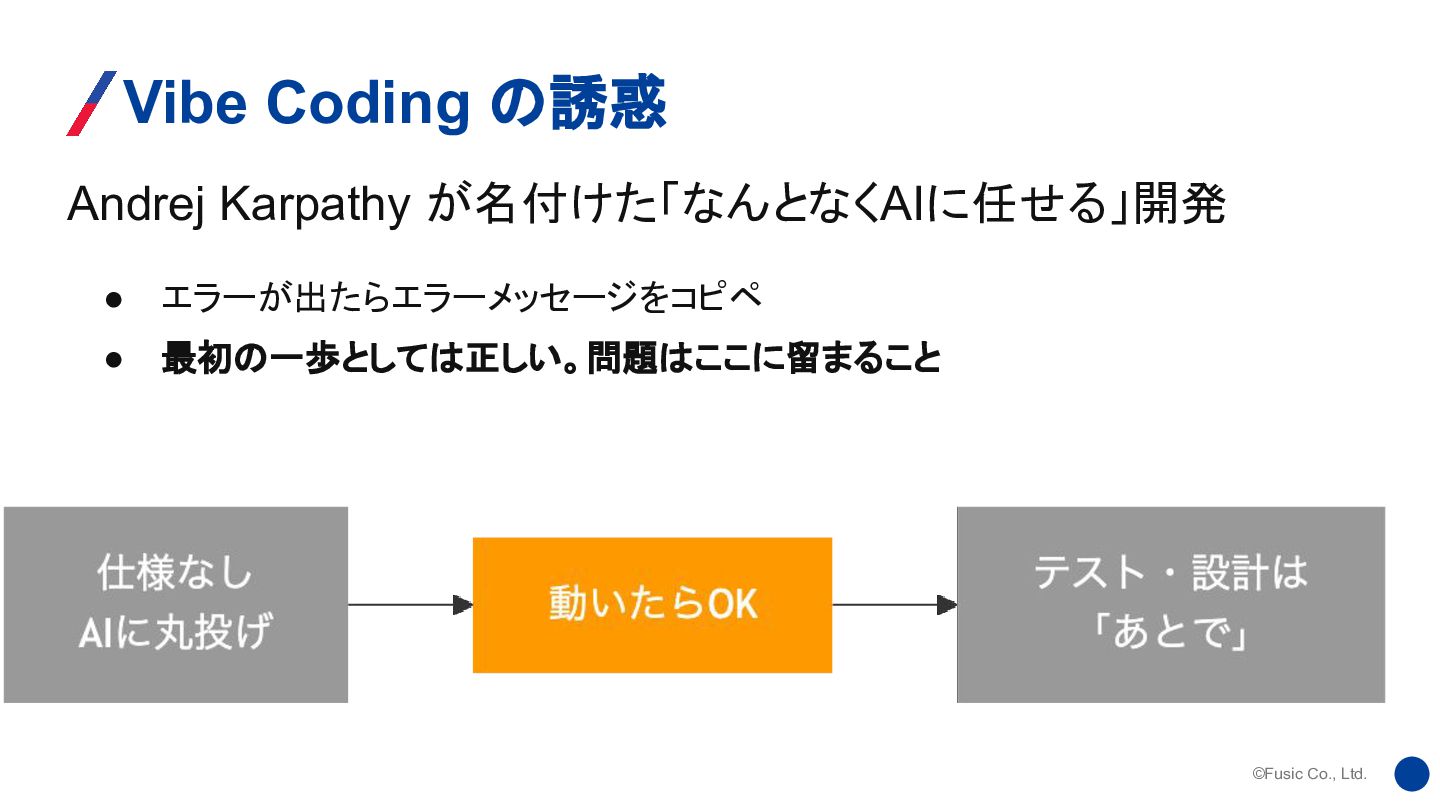 ©Fusic Co., Ltd. Andrej Karpathy が名付けた「なんとなくAIに任せる」開発 Vibe Coding の誘惑 •