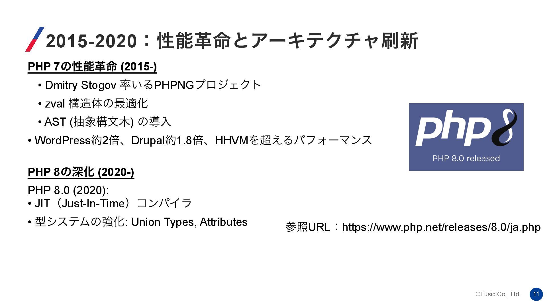 ©Fusic Co., Ltd. 11 2015-2020ɿੑೳֵ໋ͱΞʔΩςΫνϟ৽ PHP 7ͷੑೳֵ໋ (2015-) • Dmitry