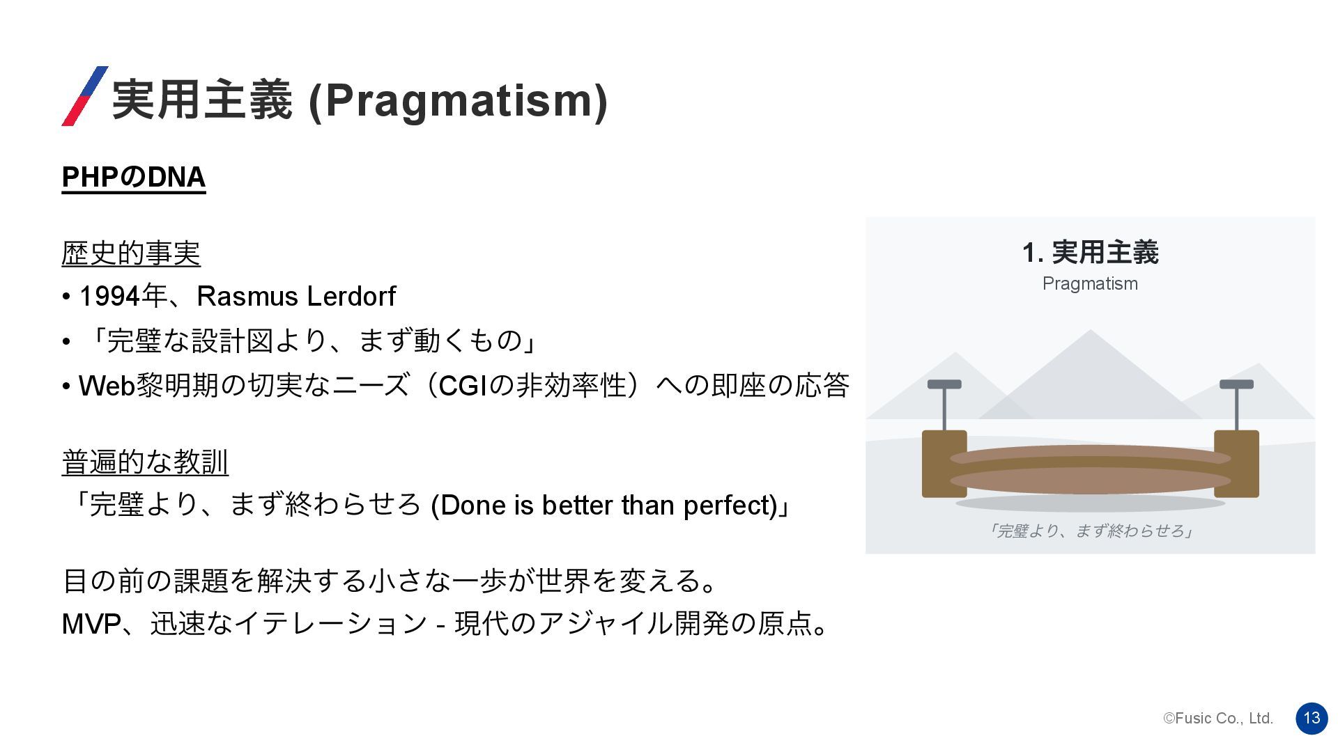 ©Fusic Co., Ltd. 13 ࣮༻ओٛ (Pragmatism) PHPͷDNA ྺ࢙తࣄ࣮ • 1994ɺRasmus