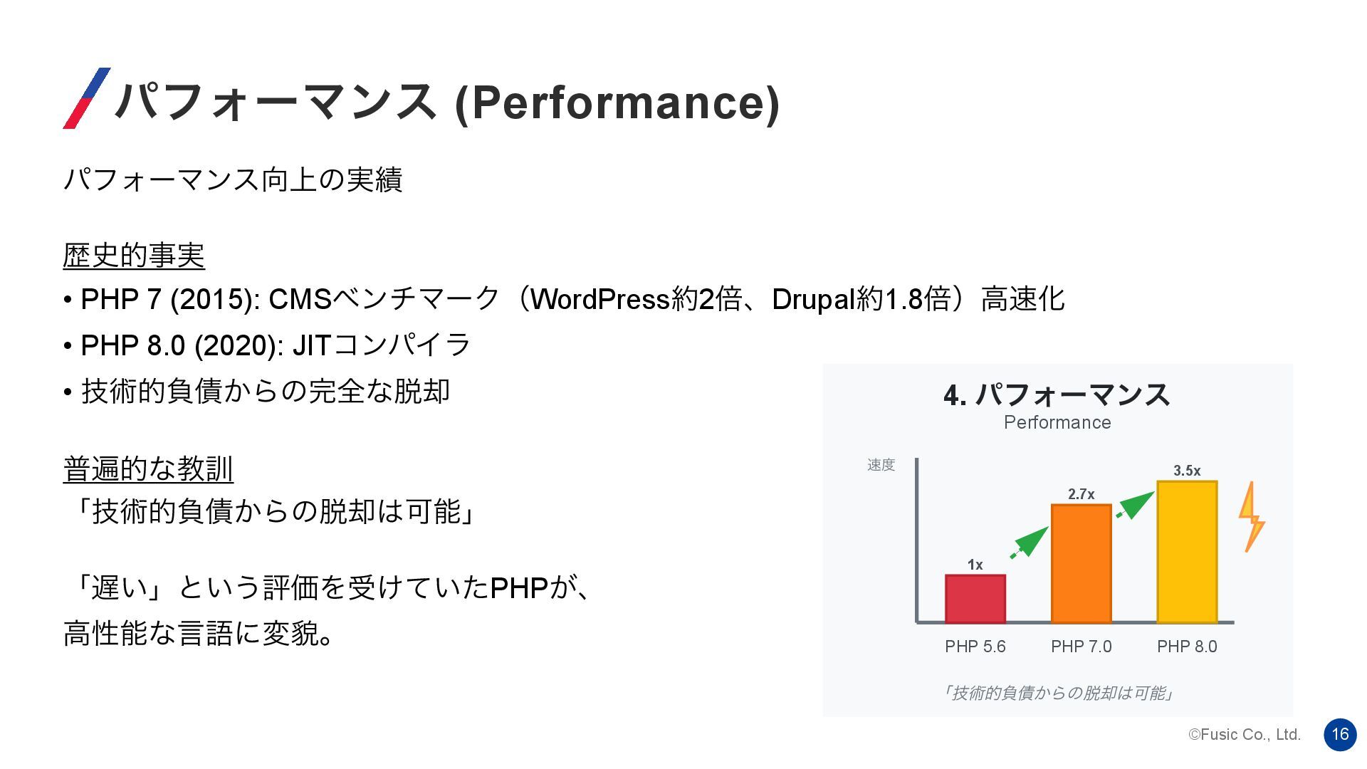 ©Fusic Co., Ltd. 16 ύϑΥʔϚϯε (Performance) ύϑΥʔϚϯε্ͷ࣮ ྺ࢙తࣄ࣮ • PHP