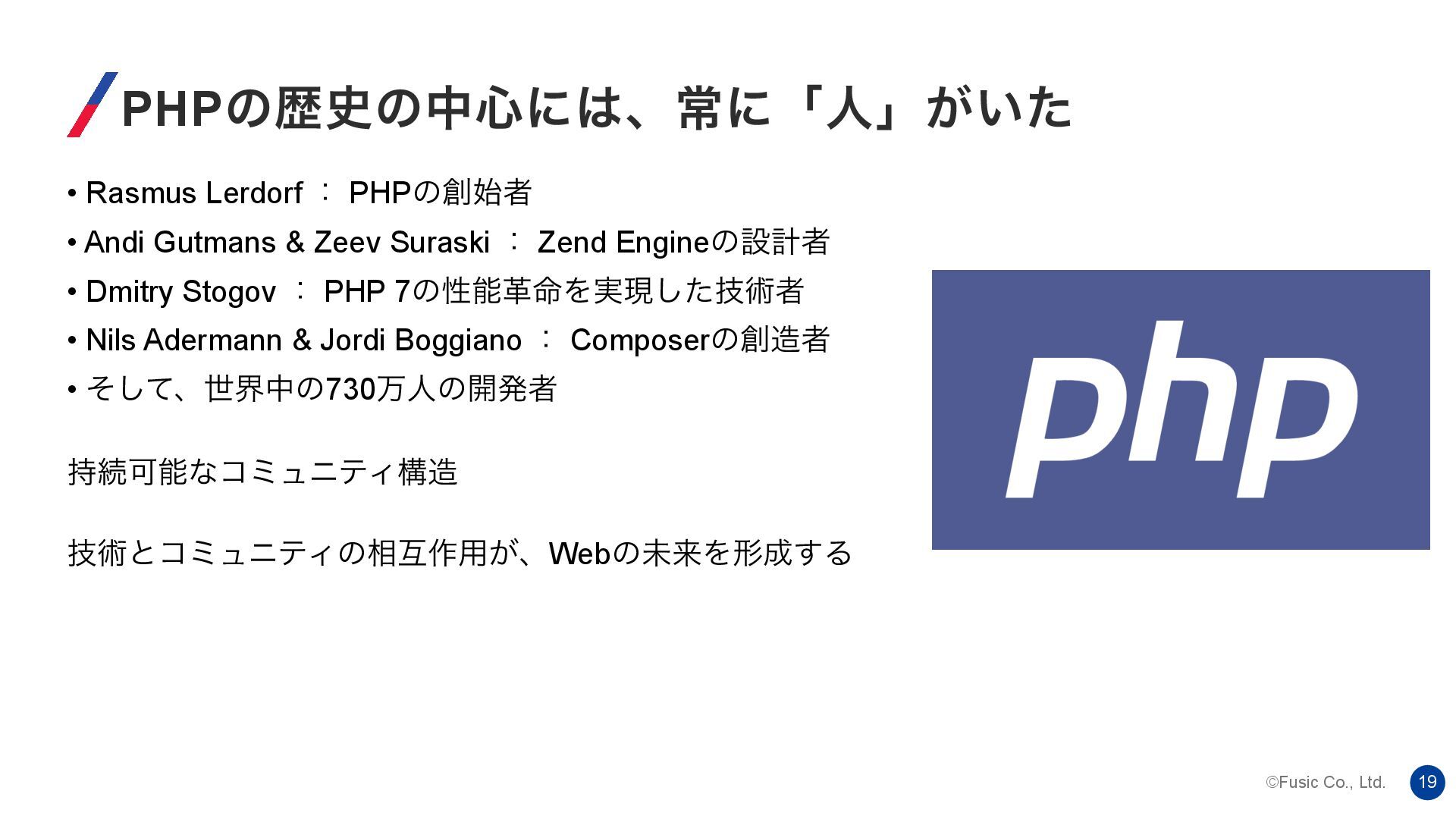 ©Fusic Co., Ltd. 19 PHPͷྺ࢙ͷத৺ʹɺৗʹʮਓʯ͕͍ͨ • Rasmus Lerdorf ɿ PHPͷ࢝ऀ