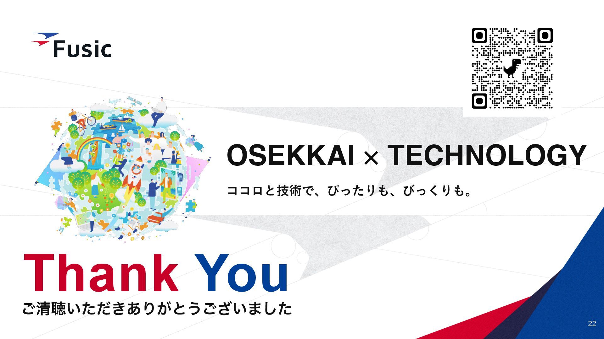 ©Fusic Co., Ltd. 22 OSEKKAI × TECHNOLOGY ίίϩͱٕज़ͰɺͽͬͨΓɺͼͬ͘Γɻ ͝ਗ਼ௌ͍͖ͨͩ͋Γ͕ͱ͏͍͟͝·ͨ͠ Thank