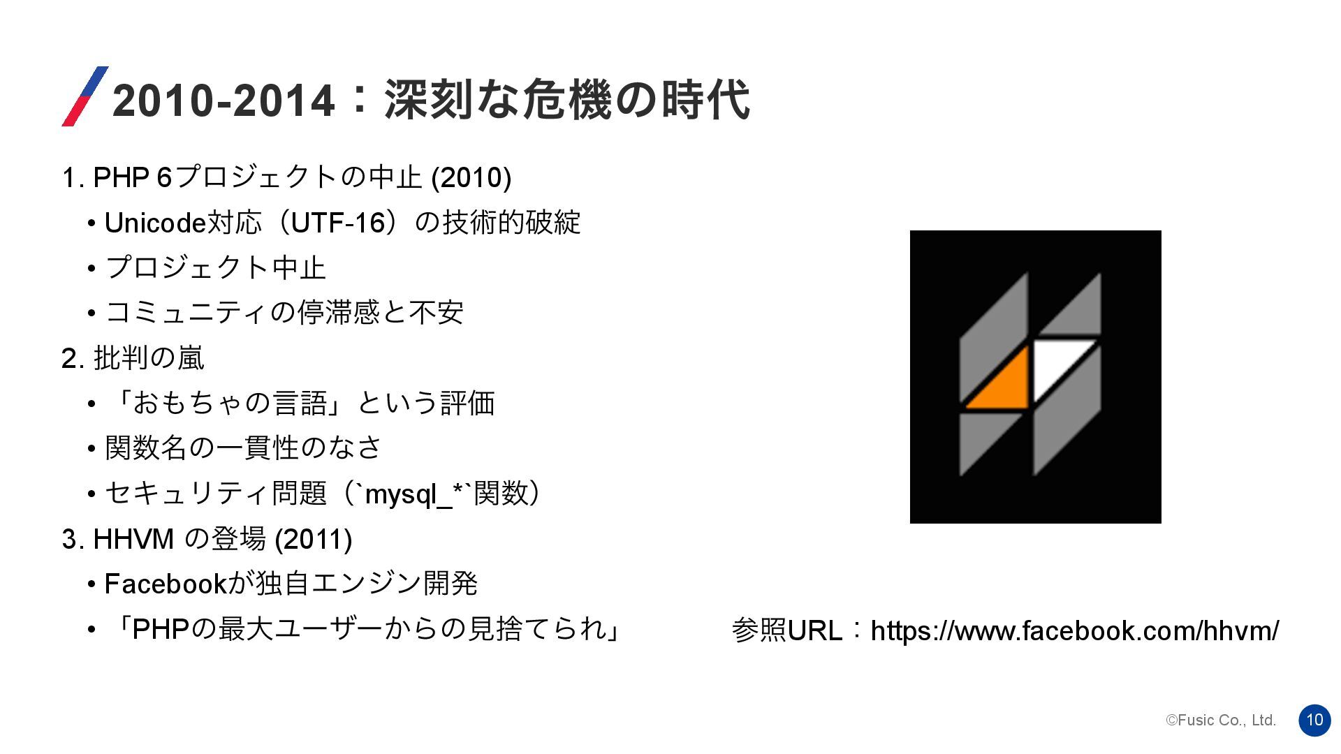©Fusic Co., Ltd. 10 2010-2014ɿਂࠁͳةػͷ࣌ 1. PHP 6ϓϩδΣΫτͷதࢭ (2010) •
