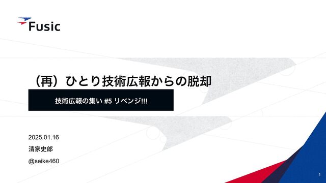 ©Fusic Co., Ltd. 1 ʢ࠶ʣͻͱΓٕज़ใ͔Βͷ٫ 2025.01.16 @seike460 ٕज़ใͷू͍ #5 Ϧϕϯδ!!!