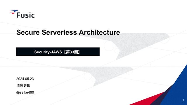 ©Fusic Co., Ltd. 1 Secure Serverless Architecture 2024.05.23 @seike460 Security-JAWSʲୈ33ճʳ