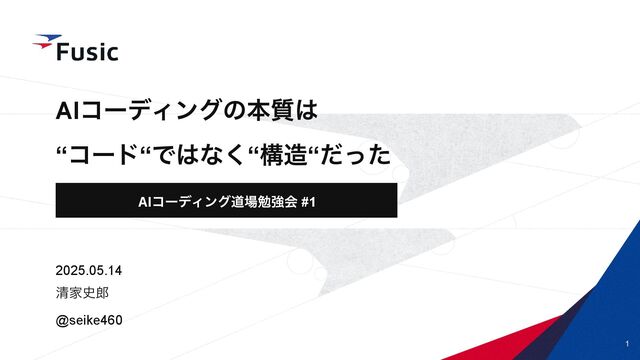 ©Fusic Co., Ltd. CONFIDENTIAL 1 AIίʔσΟϯάͷຊ࣭ “ίʔυ“Ͱͳ͘“ߏ“ͩͬͨ 2025.05.14 ਗ਼Ո࢙ @seike460