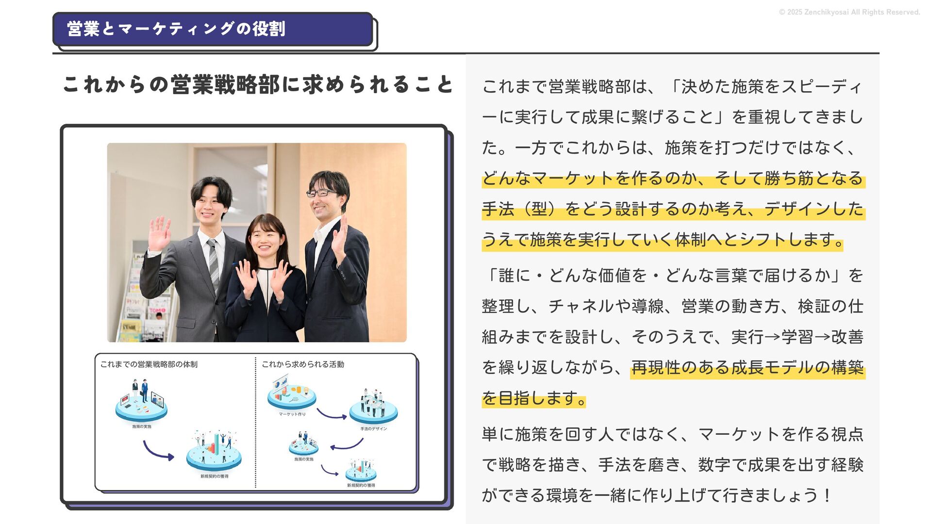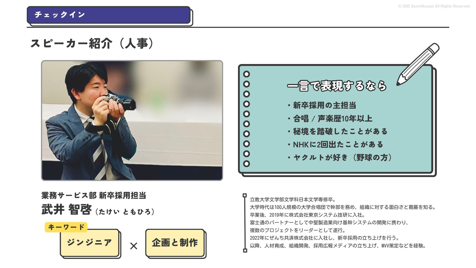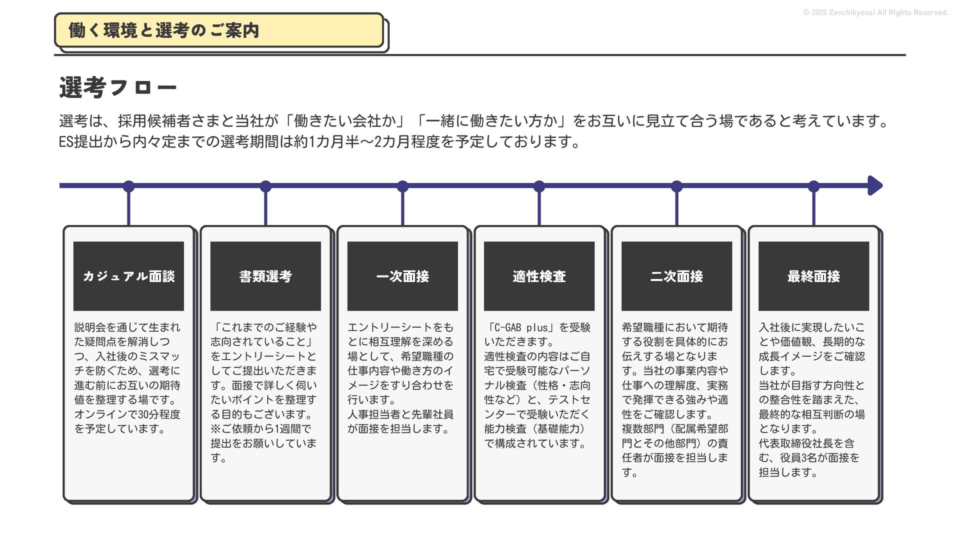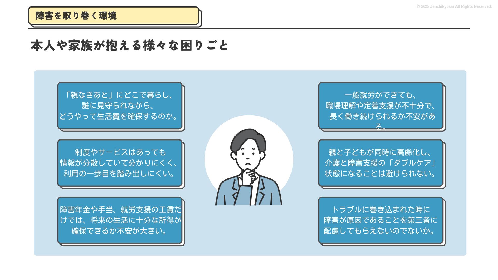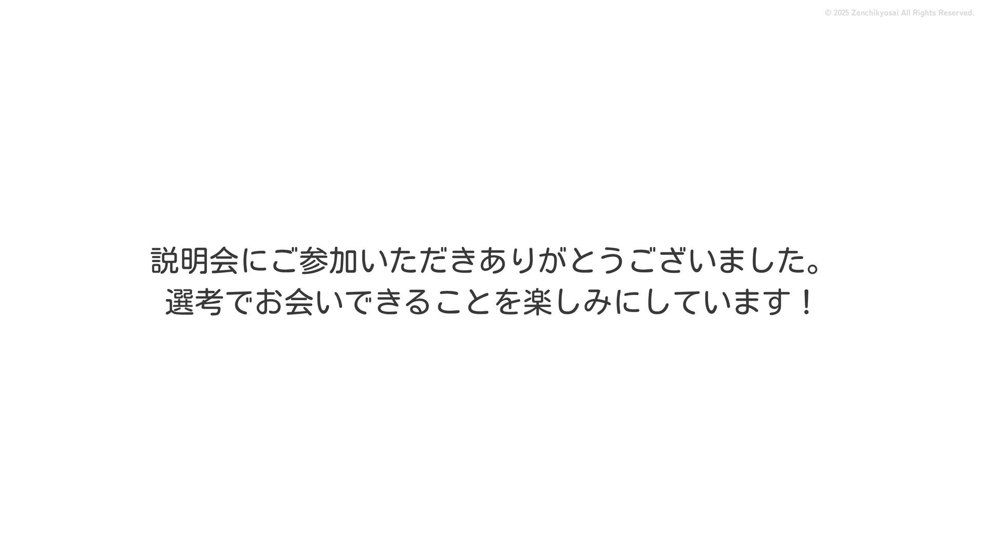 2024 0円 200,000円 400,000円 600,000円 800,000円 1,000,000円 1,200,000円 31,328 15,688 21,599 12,978 28,336 49,131 1,000,000 400,000 800,000 600,000 200,000 0 1,200,000 869,653 923,859 962,910 984,979 1,027,752 1,057,427 977,162 1,017,956 1,082,212 1,130,964 (単位:千円) 38,922 -43,891 91,608 61,280 収入保険料 経常利益 © 2025 Zenchikyosai All Rights Reserved. 収入保険料と経常利益の推移 1,162,737 46,468 設立以来、堅実に成長を続けております。当社の保険サービスは1年ごとの契約更新となりますが、 約97.0%の高い更新率を維持しており、不況にも強く安定した経営基盤がございます。 2024年度の収入保険料は 11億6,000万円 新型コロナウィルス流行による 支払い増加に伴い、初の赤字となる