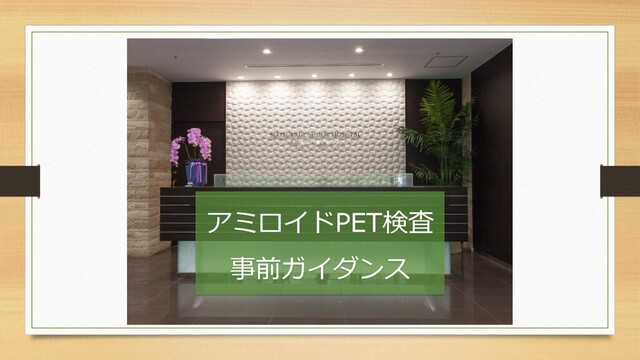 アミロイドPET検査について事前に知って いただきたいことがあり、説明させていた だきます。
