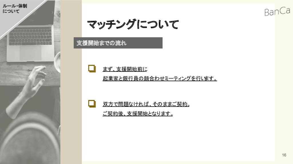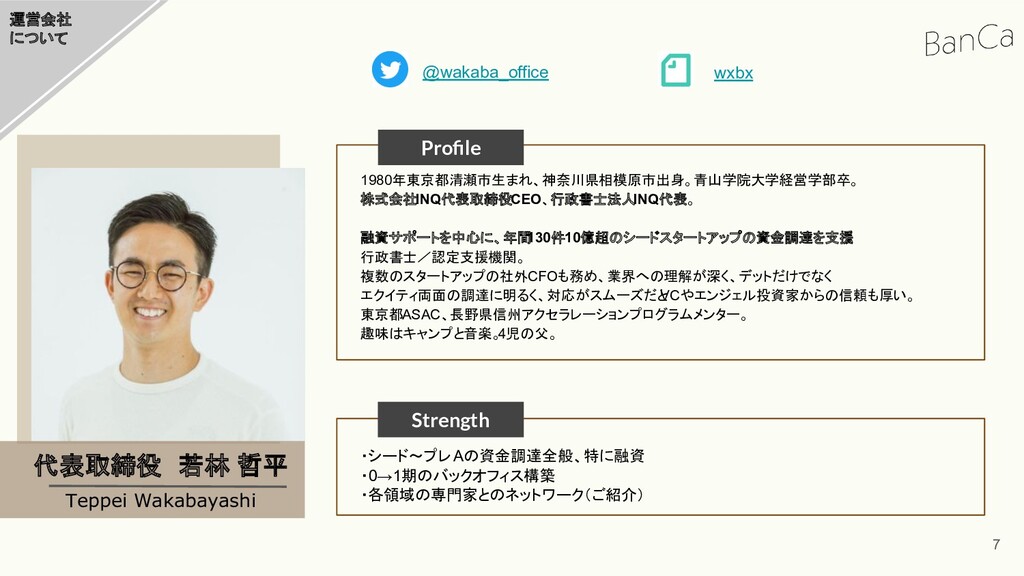 Terada 寺田 龍二 Jun Matsumoto 松本 淳 Uryo Motoda 元田 宇亮 株式会社INQ 代表取締役CEO 融資サポートを中心に、 年間130件10億超のシードス タートアップの資金調達を支 援。 株式会社キャスター 執行役員 様々なフェーズのベンチャー 企業に対して、営業、マーケ ティング、HR、経営管理など 幅広く経営支援を行っている。 Temple Field LLC 代表取締役CEO 自分の企業を売却したり出資 先が上場したり、立ち上げか らEXITまでを複数回経験。 株式会社ベーシック 新規事業開発部長 ベーシックにて経営戦略及び 新規事業開発、スタートアップ への事業投資を行う SUNDREDで財務パートナー も兼任中。 株式会社アースメディア 代表取締役 97年インテリジェンス(現パー ソルキャリア)人材紹介立ち上 げ→ジョブダイレクト創業 →リ クルートへM&A→再び起業。