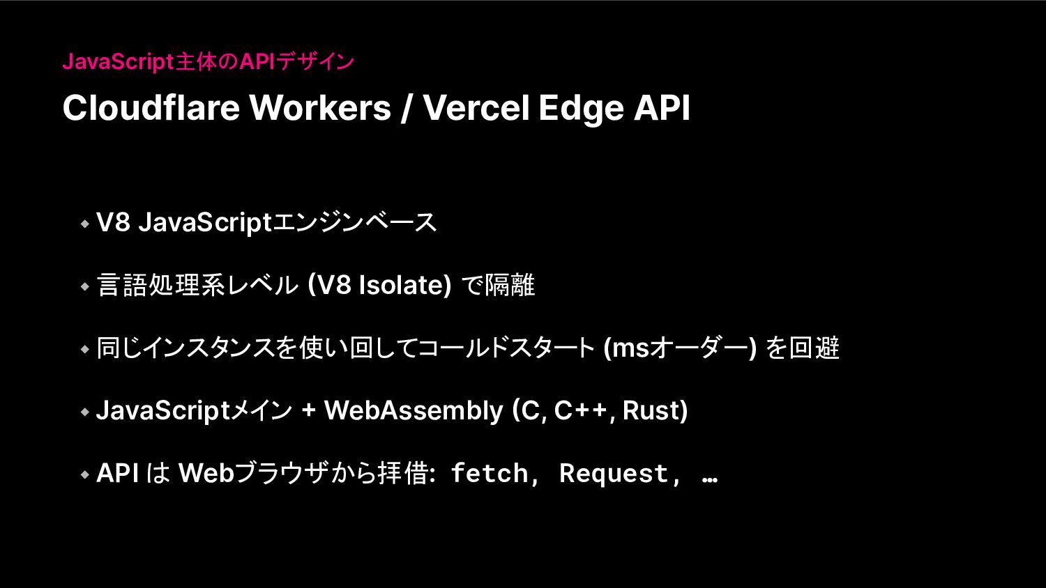 Cloudflare Workers / Vercel Edge API JavaScript主体のAPIデザイン ⬩ V8 JavaScriptエンジンベース