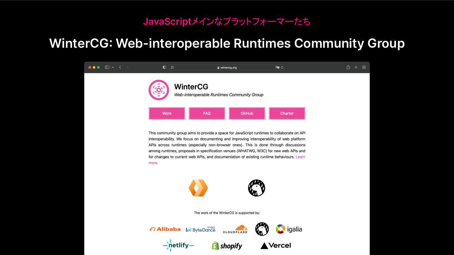 WinterCG: Web-interoperable Runtimes Community Group JavaScriptメインなプラットフォーマーたち