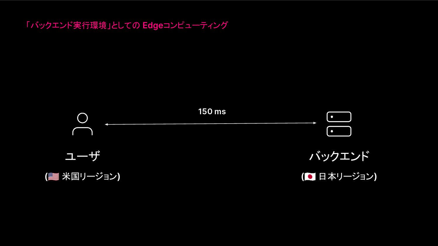 「バックエンド実行環境」としての Edgeコンピューティング ユーザ ( 米国リージョン) バックエンド ( 日本リージョン) 150 ms