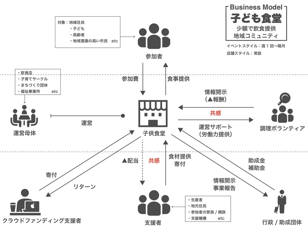 Business Model ࢠͲ৯ಊ গֹͰҿ৯ఏڙ ҬίϛϡχςΟ ࢀՃऀ ௐཧϘϥϯςΟΞ ࢠڙ৯ಊ ΫϥυϑΝϯσΟϯάࢧԉऀ ࢧԉऀ