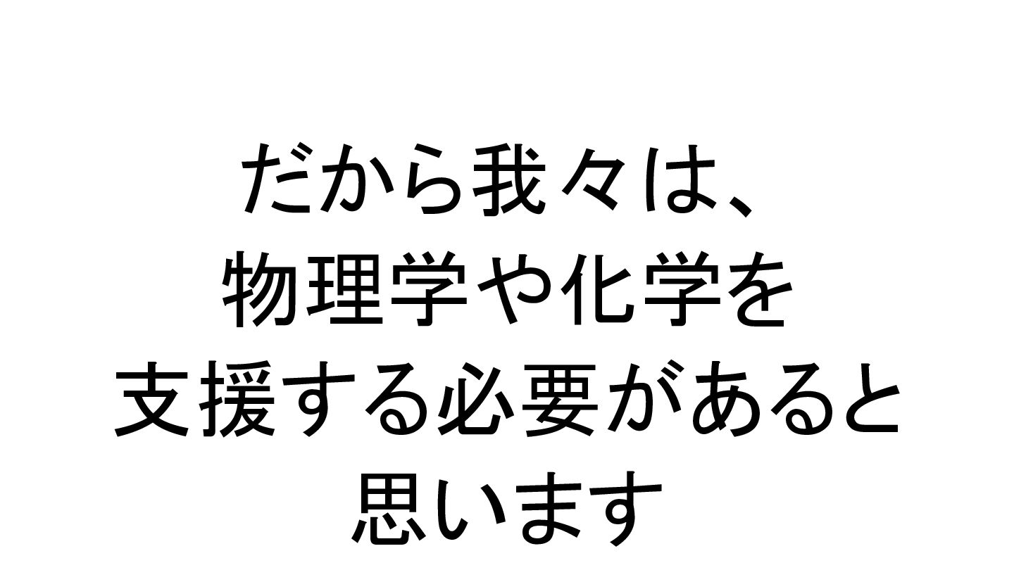 だから我々は、 物理学や化学を 支援する必要があると 思います