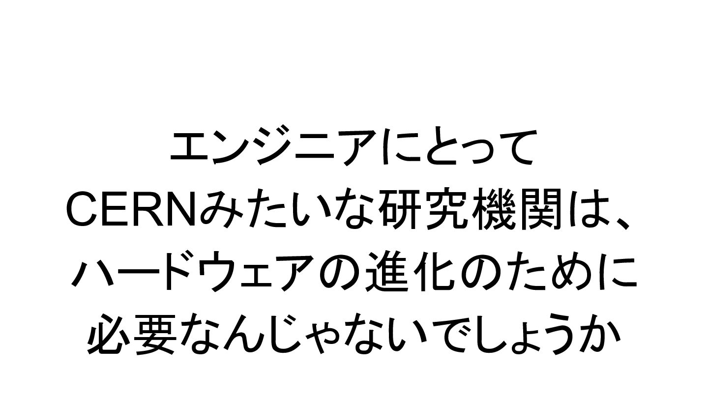 エンジニアにとって CERNみたいな研究機関は、 ハードウェアの進化のために 必要なんじゃないでしょうか
