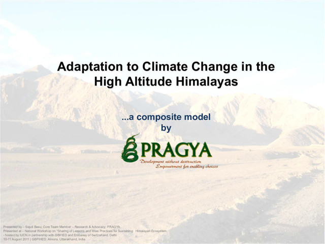 composite model by Presented by – Sejuti Basu; Core Team Member – Research & Advocacy; PRAGYA Presented at – National Workshop on “Sharing of Lessons and Wise Practices for Sustaining Himalayan Ecosystem - hosted by IUCN in partnership with GBIHED and Embassy of Switzerland, Delhi 10-11 August 2011 | GBPIHED, Almora, Uttarakhand, India