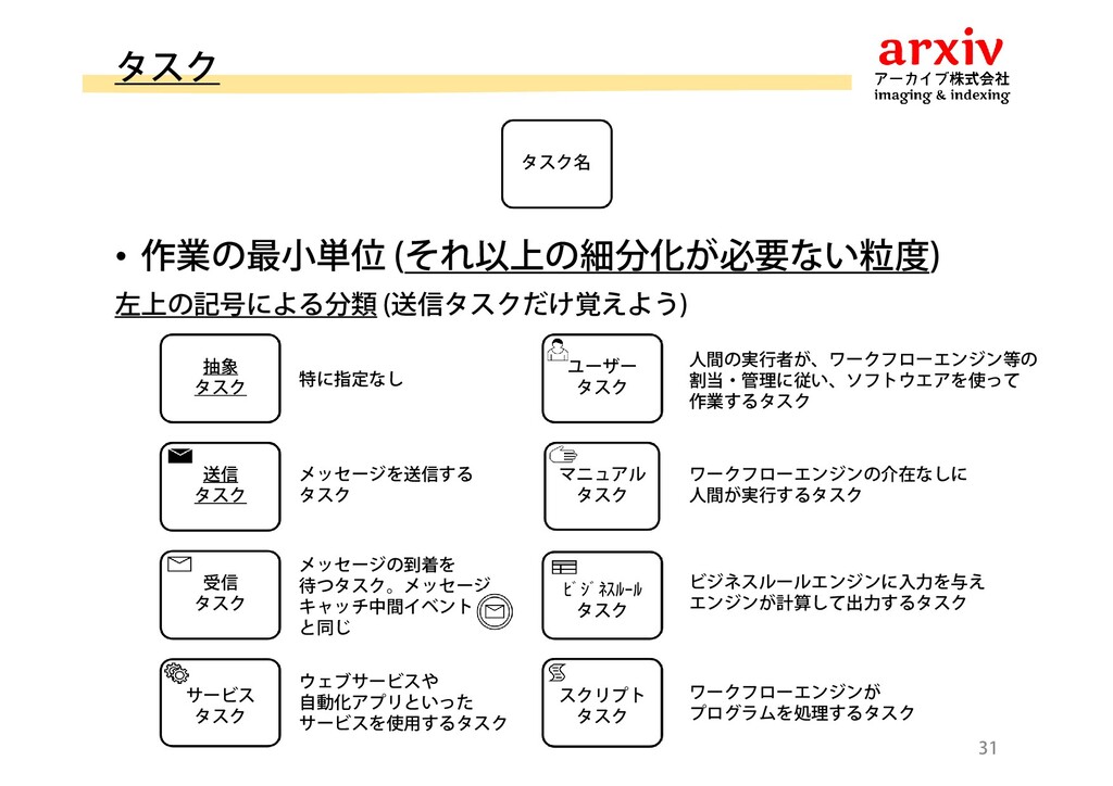 ૹ৴ λεΫ ड৴ λεΫ αʔϏε λεΫ Ϣʔβʔ λεΫ ϚχϡΞϧ λεΫ űƄŢƄŮţſŖſ λεΫ εΫϦϓτ λεΫ ಛʹࢦఆͳ͠ ϝοηʔδΛૹ৴͢Δ λεΫ ϝοηʔδͷ౸ணΛ ͭλεΫɻϝοηʔδ ΩϟονதؒΠϕϯτ ͱಉ͡ ΣϒαʔϏε ࣗಈԽΞϓϦͱ͍ͬͨ αʔϏεΛ༻͢ΔλεΫ ਓؒͷ࣮ߦऀ͕ɺϫʔΫϑϩʔΤϯδϯͷ ׂɾཧʹै͍ɺιϑτΤΞΛͬͯ ࡞ۀ͢ΔλεΫ ϫʔΫϑϩʔΤϯδϯͷհࡏͳ͠ʹ ਓ͕࣮ؒߦ͢ΔλεΫ ϏδωεϧʔϧΤϯδϯʹೖྗΛ༩͑ Τϯδϯ͕ܭࢉͯ͠ग़ྗ͢ΔλεΫ ϫʔΫϑϩʔΤϯδϯ͕ ϓϩάϥϜΛॲཧ͢ΔλεΫ