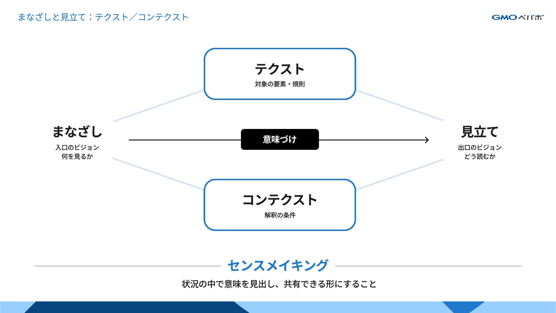 3. まなざしと見立て:テクスト/コンテクスト まなざし 入口のビジョン 何を見るか 見立て 出口のビジョン どう読むか 意味づけ テクスト 対象の要素・規則