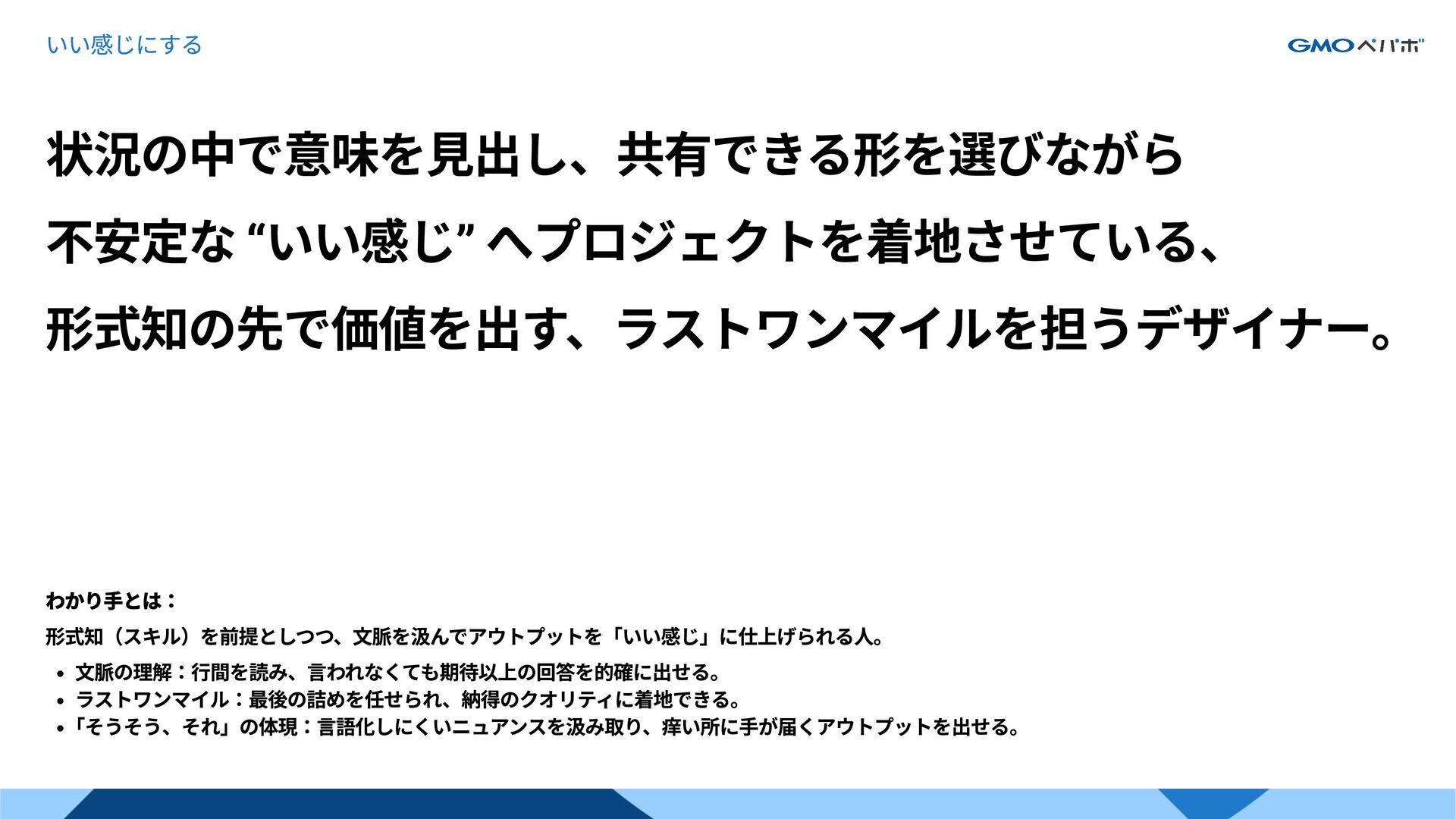抽象度の高い課題をより本質的な解法へ導く。 高度なスキルを駆使しつつも前面に出さず透明化させて、