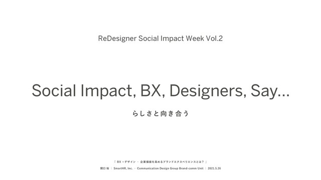 「らしさと向き合う | Social Impact, BX, Designers, Say...」